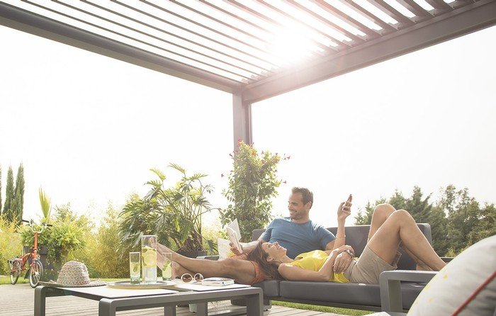 Os seus filhos adolescentes estão sozinhos em casa, com os amigos. Aproxima-se uma tempestade. A partir do seu smartphone, pode ajustar a posição das lâminas reguláveis da sua pérgola para fechá-las com um único toque. Não precisa de questionar ou de se preocupar por não saber se eles vão pensar nisso.